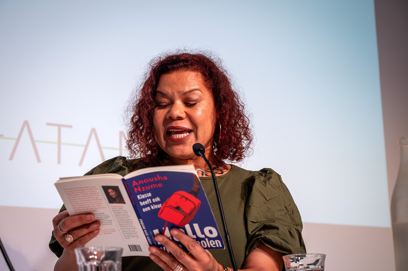 Anousha Nzume, auteur van Hallo witte scholen, en Rabin Baldewsingh, Nationaal Coördinator tegen Discriminatie en Racisme, waren te gast bij de ATANA Soos op 29 november in Droog. Er vond een pittig gesprek plaats onder leiding van moderator Sarriel Taus waarin het nog immer voortdurende racisme en discriminatie in het onderwijs van verschillende kanten werd blootgelegd.