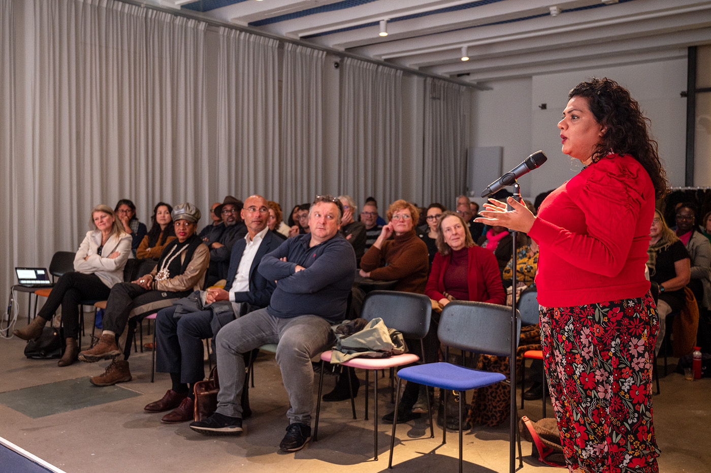 Anousha Nzume vertelde over haar onderzoek hoe kinderen van kleur stelselmatig worden onder-geadviseerd. Ze heeft gedegen veldwerk en literatuuronderzoek gedaan. Verhalen uit het veld en bevindingen uit wetenschappelijk onderzoek versterken elkaar. “Het zijn pijnlijke verhalen, die ook ikzelf aan den lijve heb ondervonden. Het is hoog tijd voor actie te beginnen bij de docenten zelf, die op de werkvloer het verschil kunnen maken.”